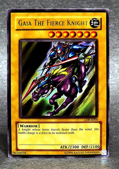 Yu-Gi-Oh Gaia The Fierce Knight LOB-E004 Super Rare Europe Legend of Blue Eyes CCG Card
