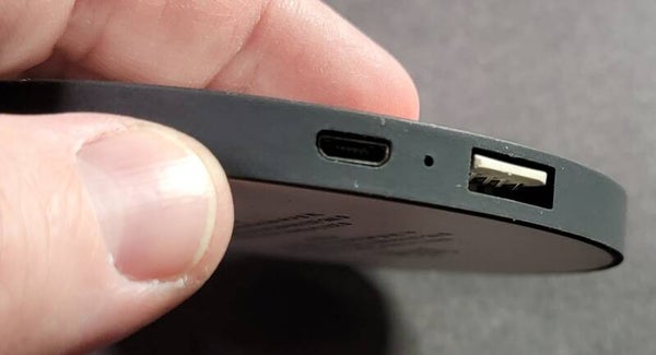 Some marks on the back from use but still holds a decent charge and delivers emergency power. Comes with 38" USB Cable.