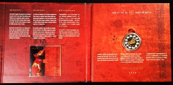 Celebrate the 2009 Year of the Ox with the Canada Post Thematic Collection. This exclusive set is limited to 6000 produced and includes a beautifully designed stamp and sterling silver coin with a gold plated cameo, perfect for collectors of Canadian memorabilia and enthusiasts of the Chinese zodiac. Add this unique and collectible Year of the Ox set to your collection today!