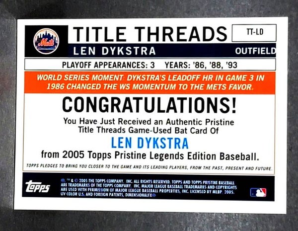 2005 Topps Pristine Legends Title Threads Relics #TT-LD Len Dykstra Collectible Sports Trading Card